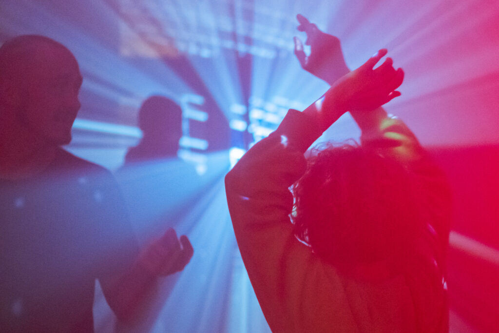 Der zweite Festivalteil stellte die Verbindung zwischen Clubkultur und Hochkultur in den Mittelpunkt. Im Archiv der Avantgarden wurde mit »Club Contraire« ein Raum für Experimente geschaffen, in dem elektronische Musik, Visuals und Klangperformance neue Verbindungen eingingen. Moritz Simon Geist präsentierte seine innovative Ambient-Klangskulptur »Don’t Look At Me«, während Shannon Soundquist und Jana Lütkewitte künstlerische Perspektiven auf die Verschmelzung von Klang und visuellem Ausdruck eröffneten.